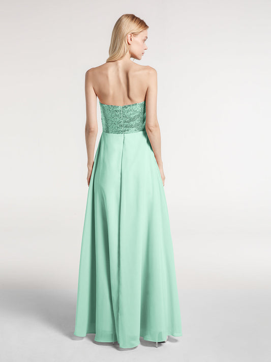 Babaroni XeniaVestido de chiffon con escote en forma de corazón, encaje y lentejuelas en la parte superior Verde Menta