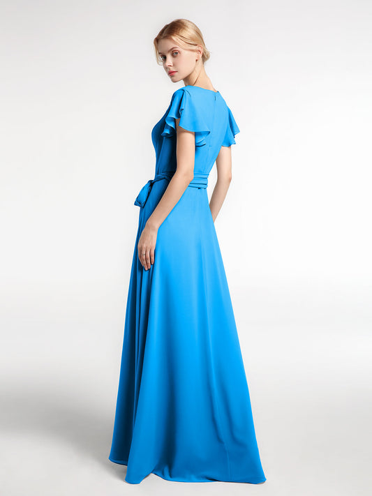 Babaroni VanessaVestido de chiffon con escote en V y mangas cortas con lazo Azul Océano