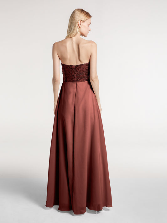 Babaroni XeniaVestido de chiffon con escote en forma de corazón, encaje y lentejuelas en la parte superior Terracota