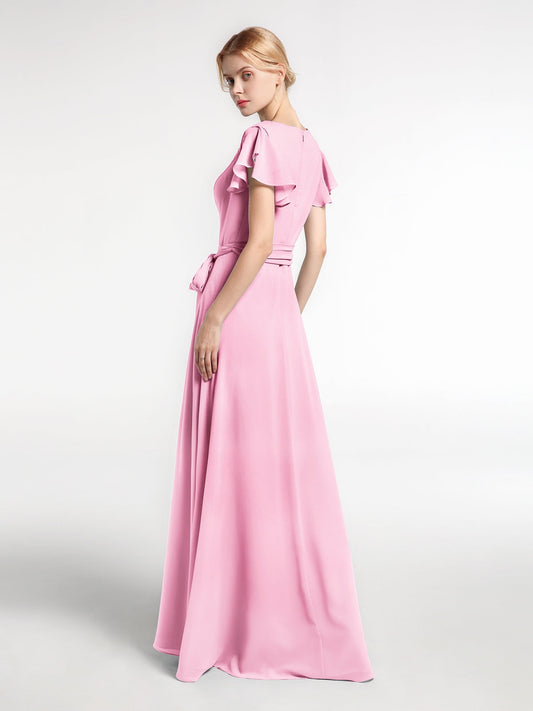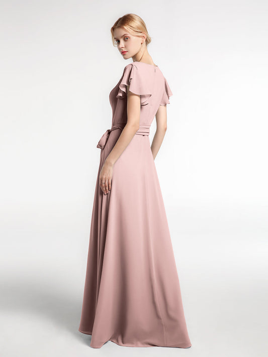 Babaroni VanessaVestido de chiffon con escote en V y mangas cortas con lazo Rosa Polvoriento