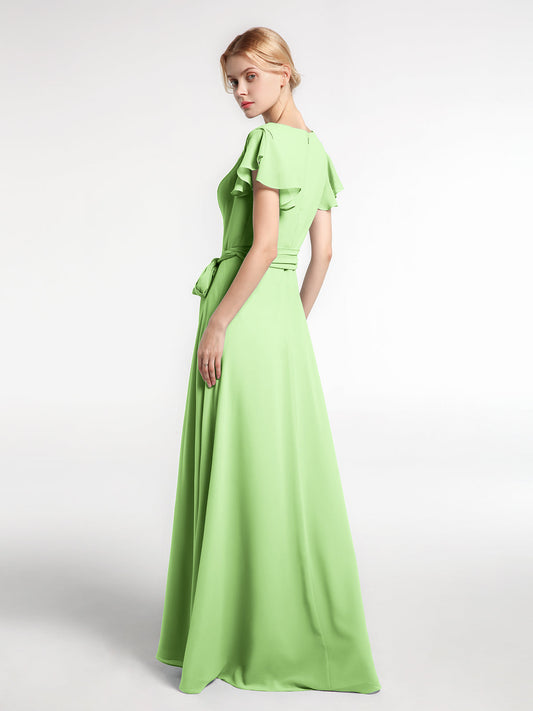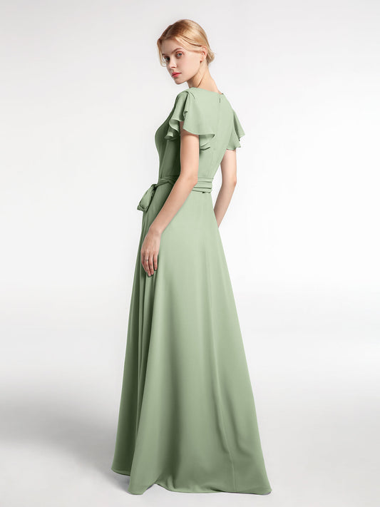 Babaroni VanessaVestido de chiffon con escote en V y mangas cortas con lazo Salvia