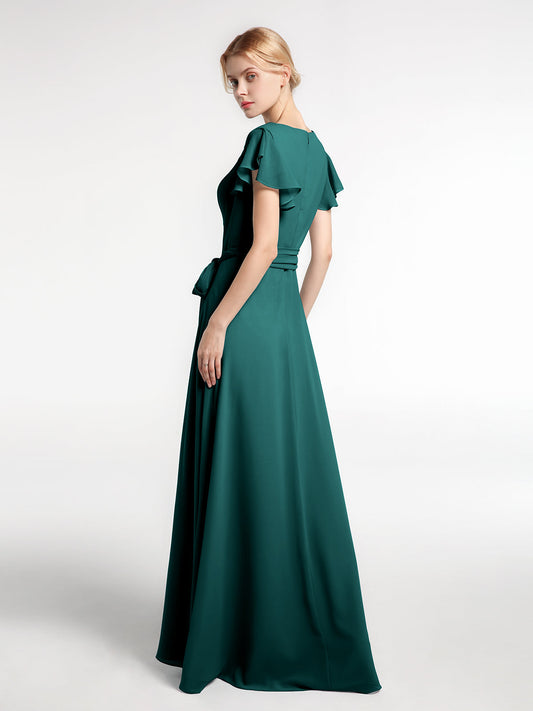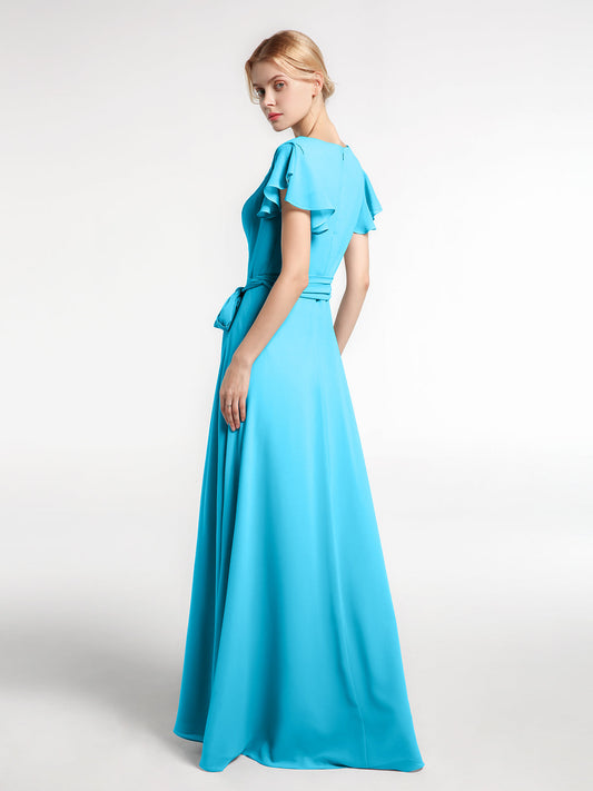Babaroni VanessaVestido de chiffon con escote en V y mangas cortas con lazo Pavo real