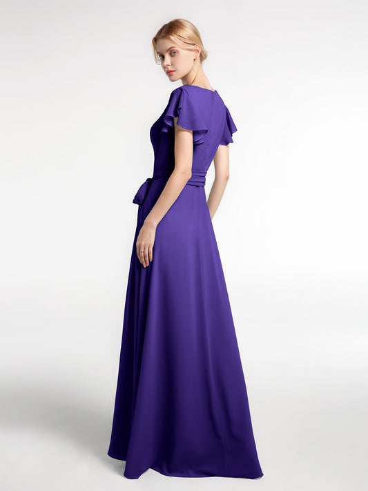 Babaroni VanessaVestido de chiffon con escote en V y mangas cortas con lazo Regencia Tallas Grandes