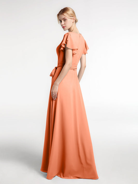 Babaroni VanessaVestido de chiffon con escote en V y mangas cortas con lazo Papaya Tallas Grandes