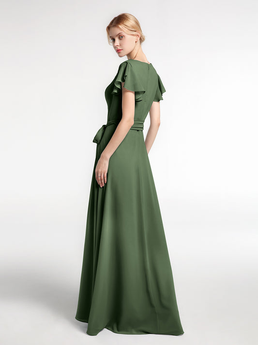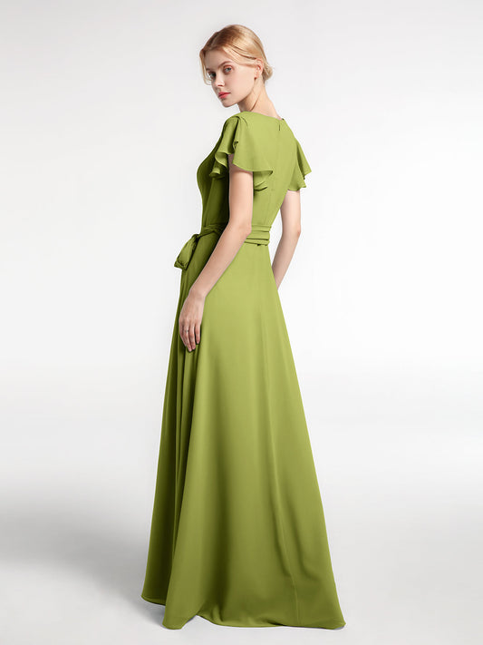 Babaroni VanessaVestido de chiffon con escote en V y mangas cortas con lazo Verde Oliva