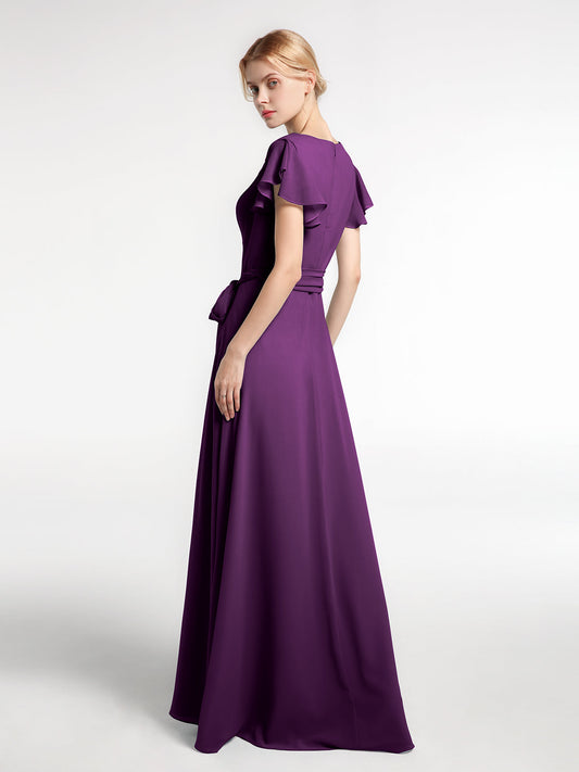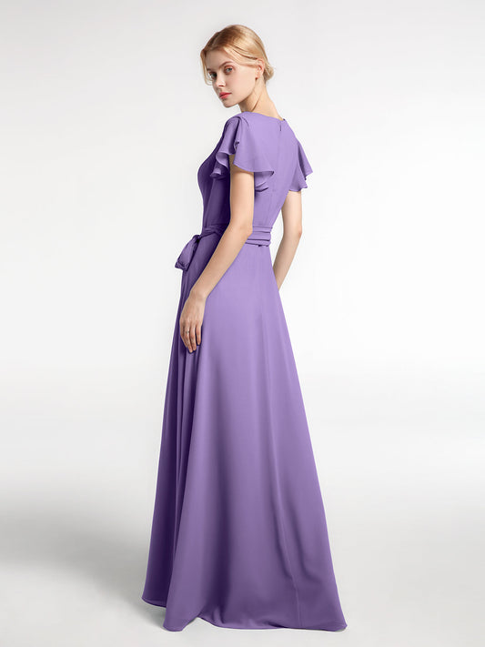Babaroni VanessaVestido de chiffon con escote en V y mangas cortas con lazo Uva