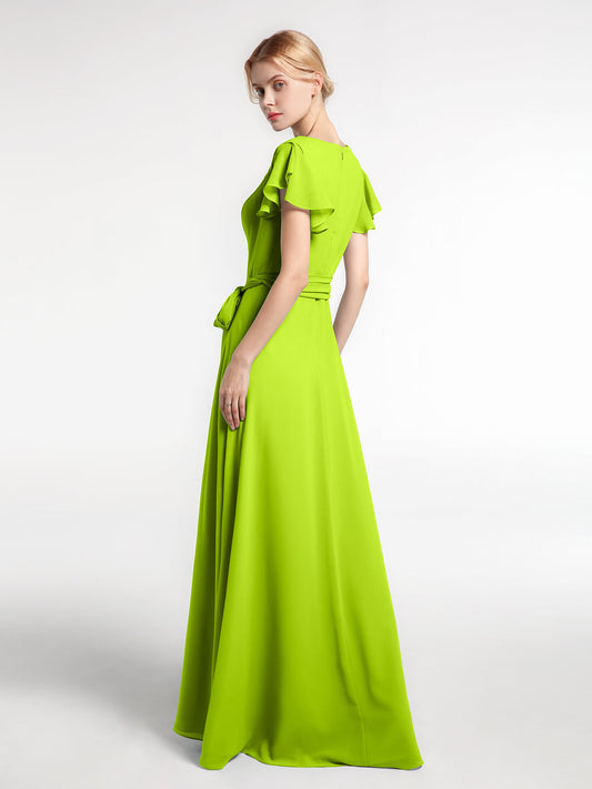 Babaroni VanessaVestido de chiffon con escote en V y mangas cortas con lazo Verde Lima