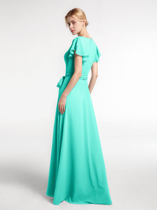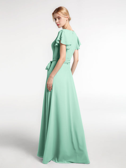 Babaroni VanessaVestido de chiffon con escote en V y mangas cortas con lazo Verde Menta