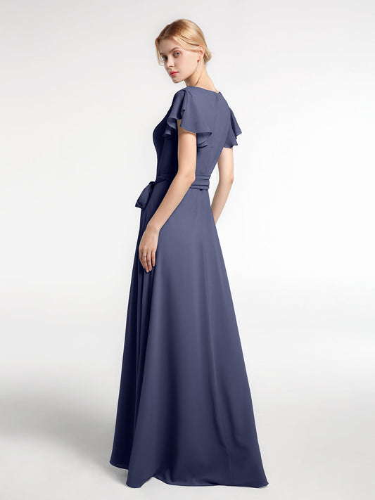 Babaroni VanessaVestido de chiffon con escote en V y mangas cortas con lazo Tormenta