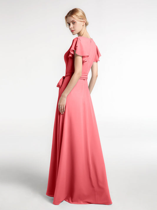 Babaroni VanessaVestido de chiffon con escote en V y mangas cortas con lazo Sandía Tallas Grandes