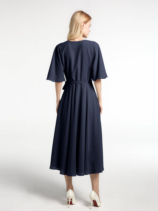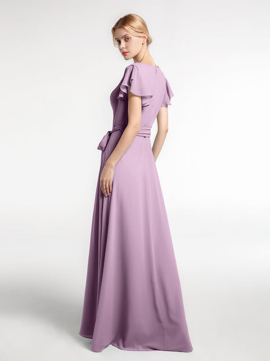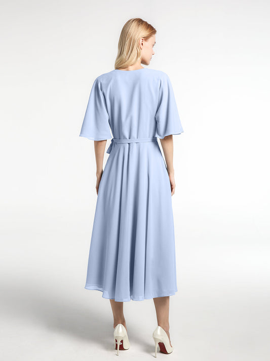 Babaroni VanessaVestido de chiffon con escote en V y mangas cortas con lazo Wisteria