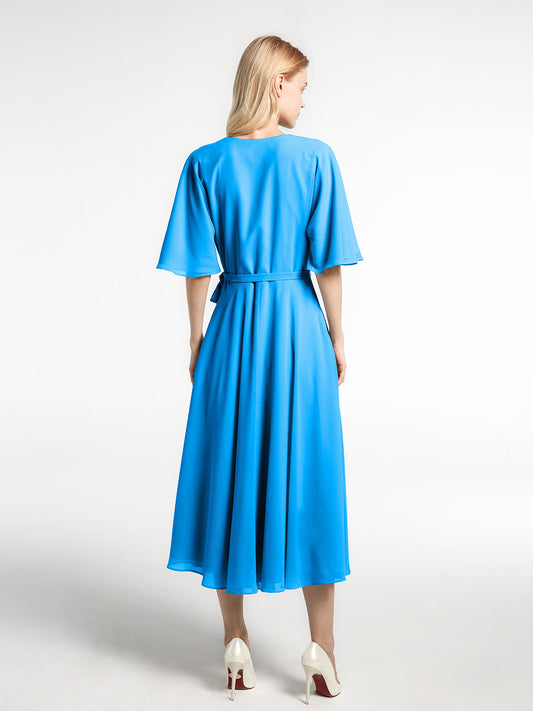 Babaroni ZonaVestido de chiffon con escote en V y mangas media longitud, a la altura de la rodilla Azul Cielo
