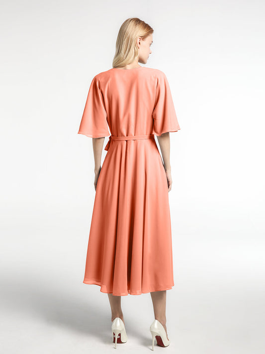 Babaroni ZonaVestido de chiffon con escote en V y mangas media longitud, a la altura de la rodilla Azalea