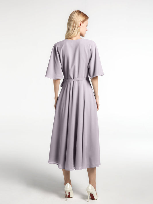 Babaroni ZonaVestido de chiffon con escote en V y mangas media longitud, a la altura de la rodilla Crepúsculo