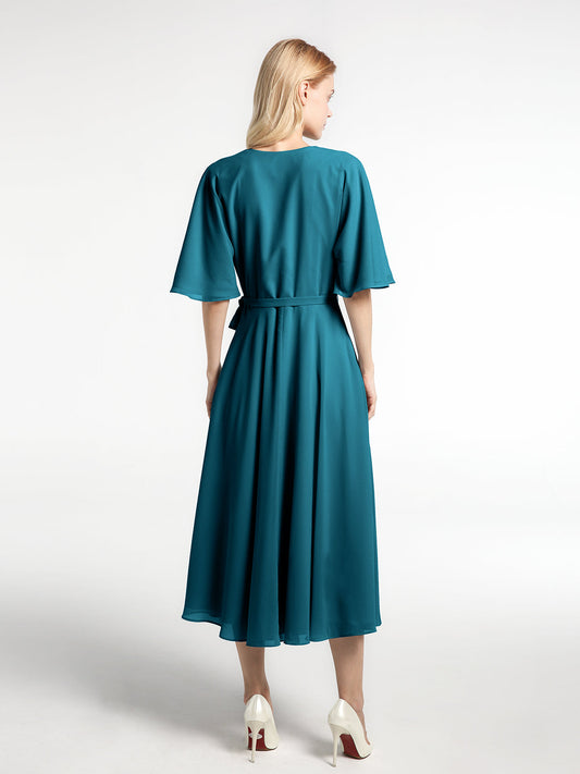 Babaroni ZonaVestido de chiffon con escote en V y mangas media longitud, a la altura de la rodilla Esmeralda