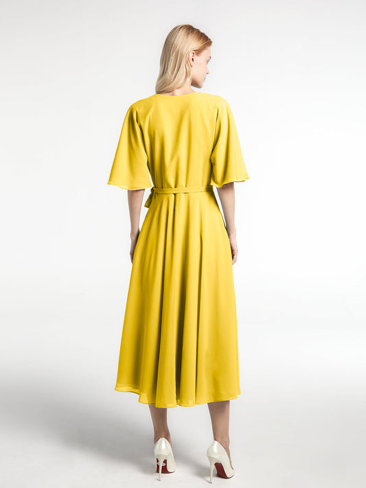 Babaroni ZonaVestido de chiffon con escote en V y mangas media longitud, a la altura de la rodilla Caléndula