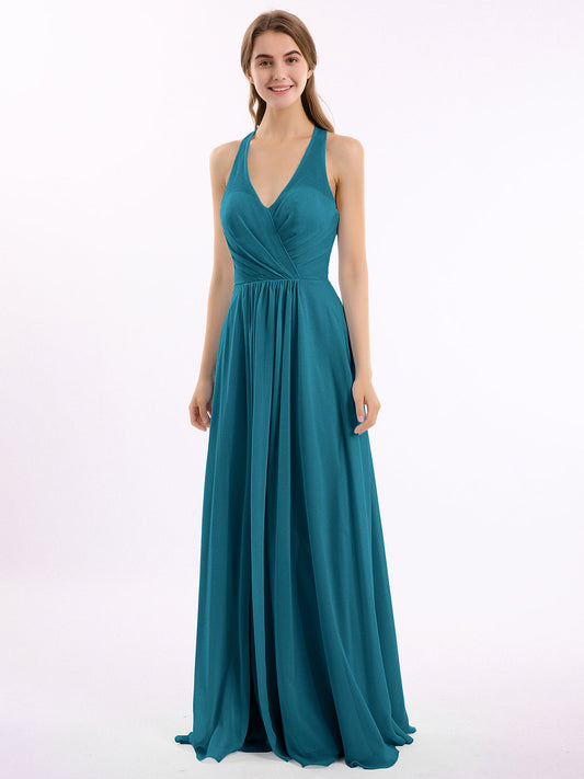 Babaroni DaphneVestido de chiffon con escote en V y tirantes de lazo Azul Océano Tallas Grandes