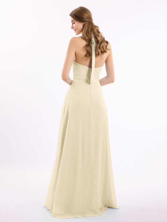 Babaroni DaphneVestido de chiffon con escote en V y tirantes de lazo Champán Tallas Grandes