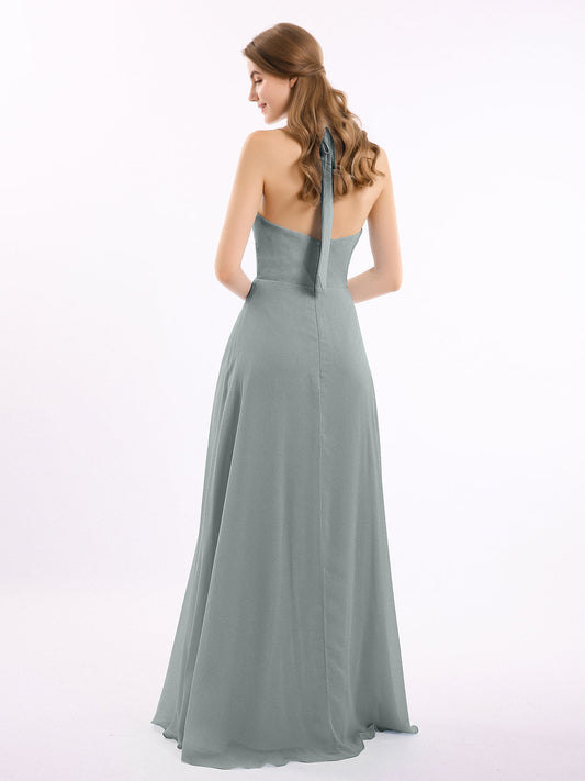 Babaroni DaphneVestido de chiffon con escote en V y tirantes de lazo Gris Acero