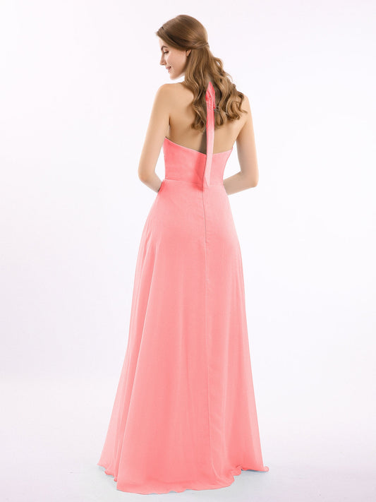 Babaroni DaphneVestido de chiffon con escote en V y tirantes de lazo Coral