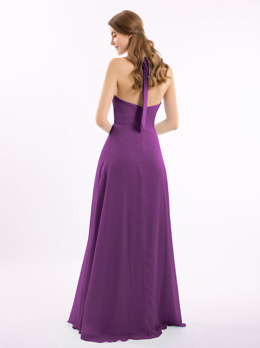 Babaroni DaphneVestido de chiffon con escote en V y tirantes de lazo Uva