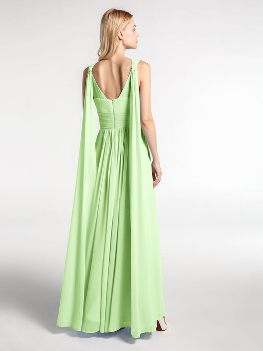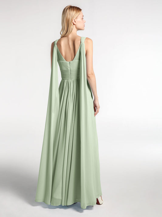 Babaroni MichelleVestido de chiffon con escote en V y tiras traseras decorativas Salvia