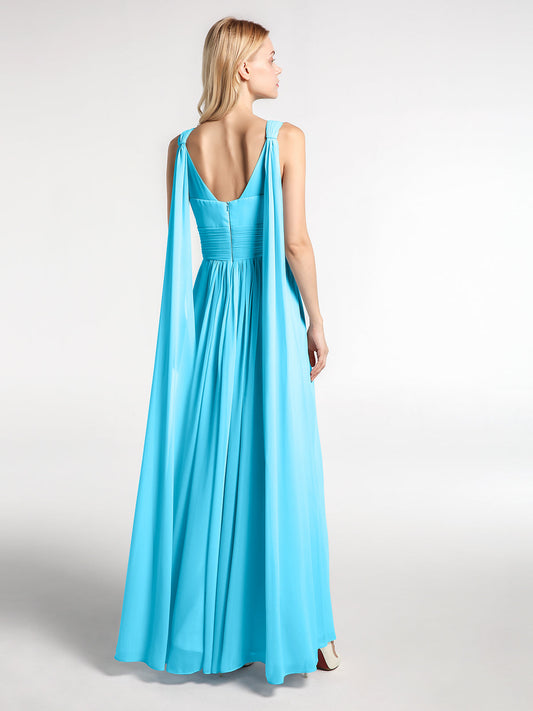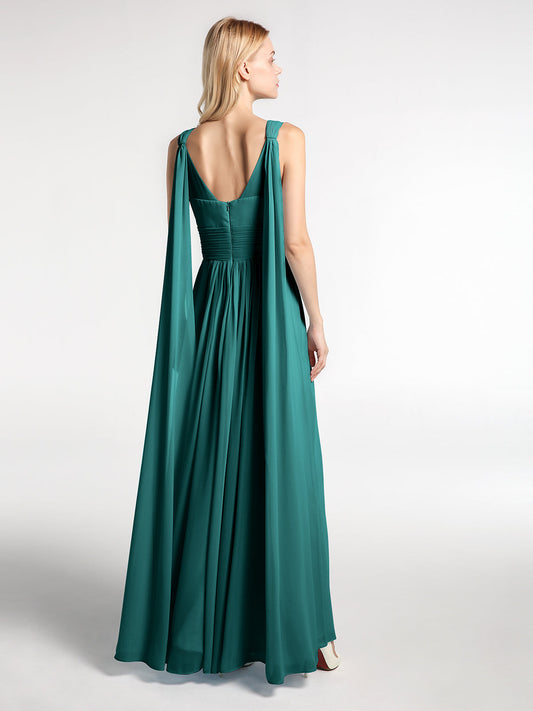 Babaroni MichelleVestido de chiffon con escote en V y tiras traseras decorativas Pavo real