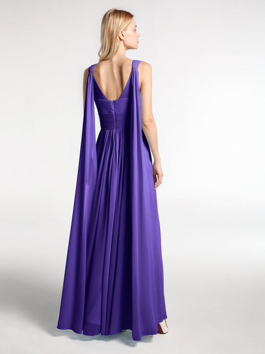 Babaroni MichelleVestido de chiffon con escote en V y tiras traseras decorativas Pavo real Tallas Grandes