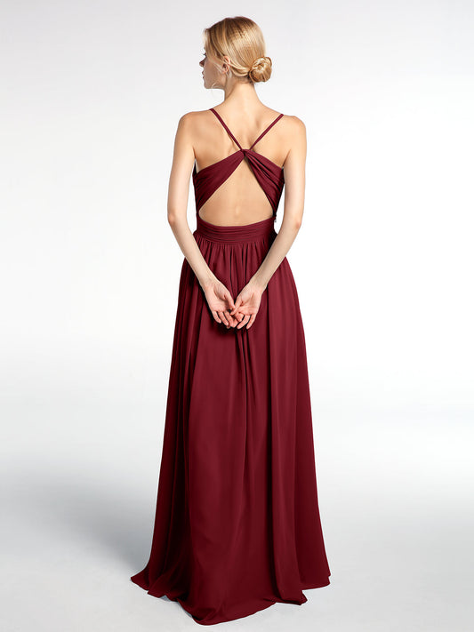 Babaroni BreendaVestido de chiffon con espalda abierta en forma de cruz y tirantes finos Borgoña Tallas Grandes