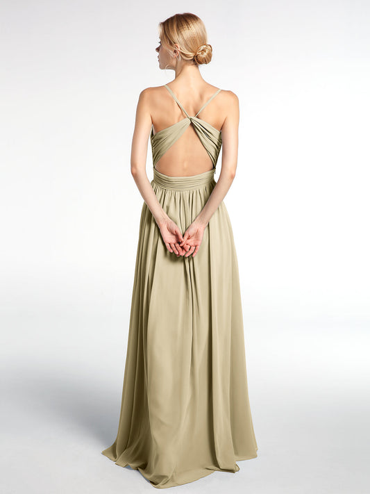 Babaroni BreendaVestido de chiffon con espalda abierta en forma de cruz y tirantes finos Champán Tallas Grandes