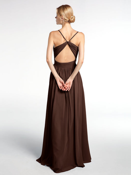 Babaroni BreendaVestido de chiffon con espalda abierta en forma de cruz y tirantes finos Chocolate Tallas Grandes