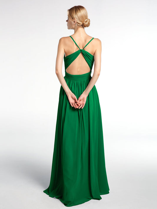 Babaroni BreendaVestido de chiffon con espalda abierta en forma de cruz y tirantes finos Esmeralda Tallas Grandes