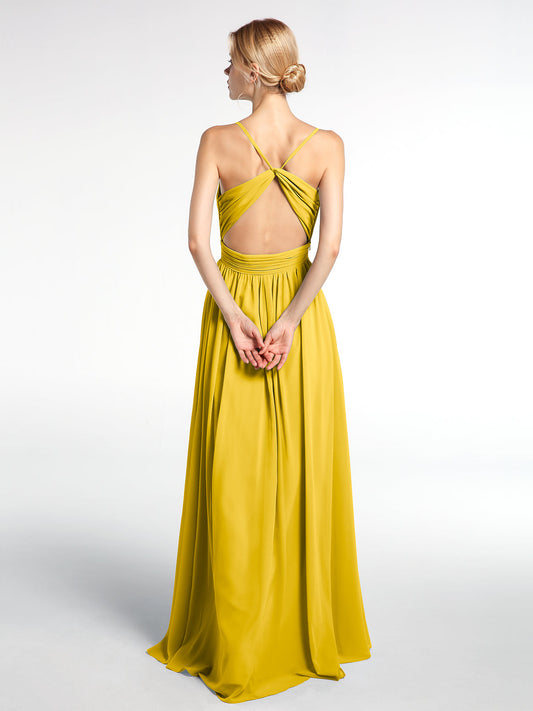 Babaroni BreendaVestido de chiffon con espalda abierta en forma de cruz y tirantes finos Caléndula Tallas Grandes