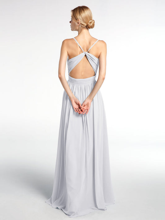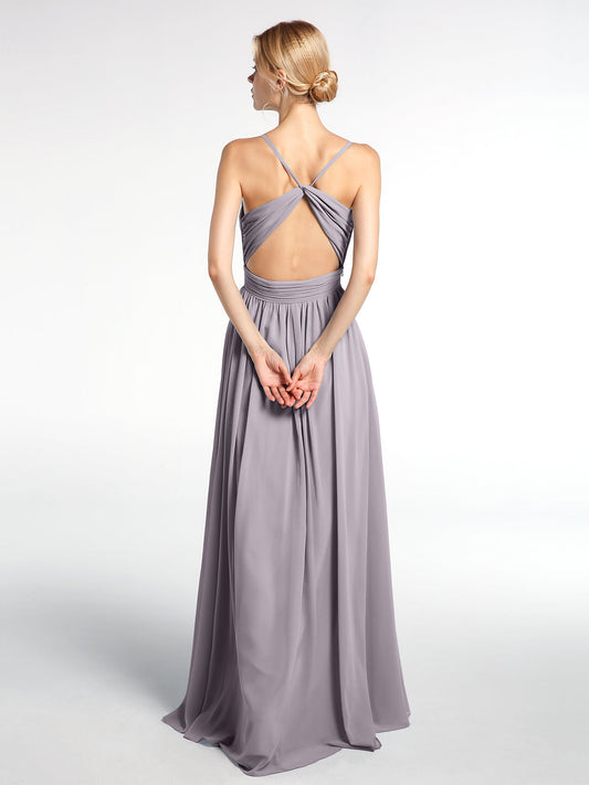 Babaroni BreendaVestido de chiffon con espalda abierta en forma de cruz y tirantes finos Crepúsculo Tallas Grandes