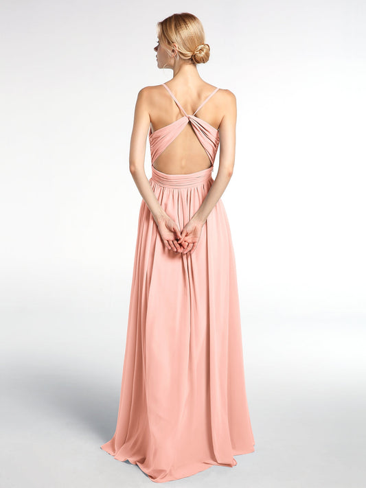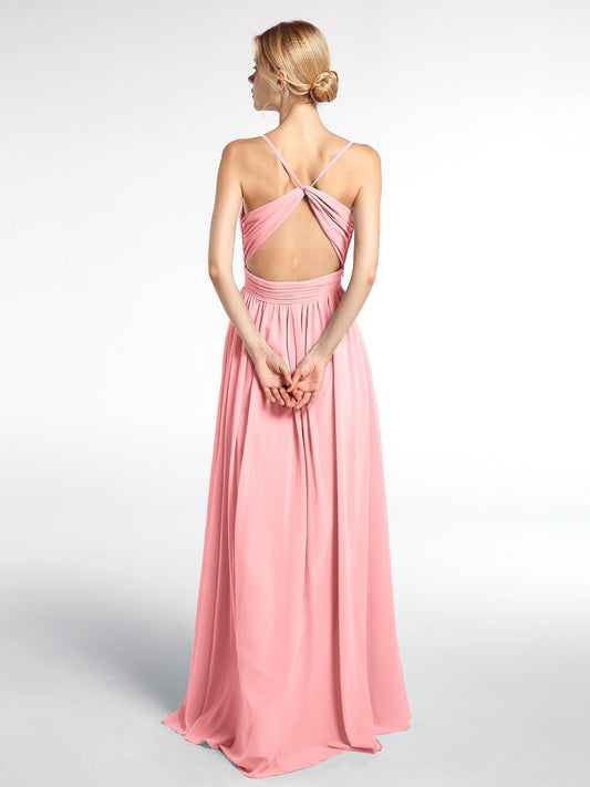 Babaroni BreendaVestido de chiffon con espalda abierta en forma de cruz y tirantes finos Coral Tallas Grandes