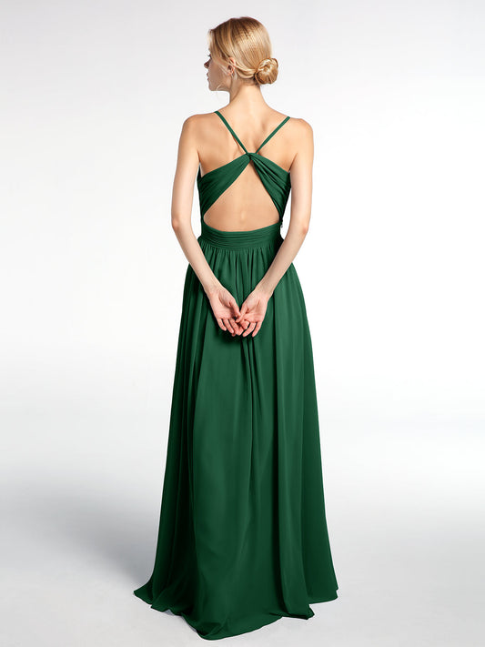 Babaroni BreendaVestido de chiffon con espalda abierta en forma de cruz y tirantes finos Verde Oscuro Tallas Grandes