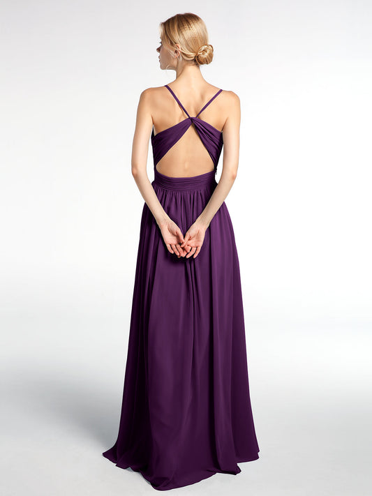 Babaroni BreendaVestido de chiffon con espalda abierta en forma de cruz y tirantes finos Uva Tallas Grandes