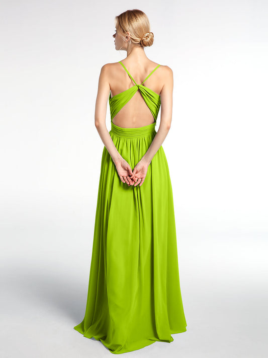Babaroni BreendaVestido de chiffon con espalda abierta en forma de cruz y tirantes finos Verde Lima Tallas Grandes