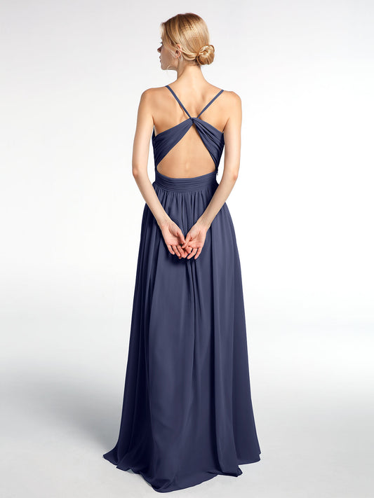 Babaroni BreendaVestido de chiffon con espalda abierta en forma de cruz y tirantes finos Tormenta Tallas Grandes