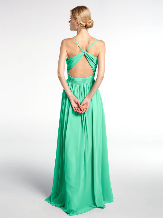 Babaroni BreendaVestido de chiffon con espalda abierta en forma de cruz y tirantes finos Verde Menta Tallas Grandes