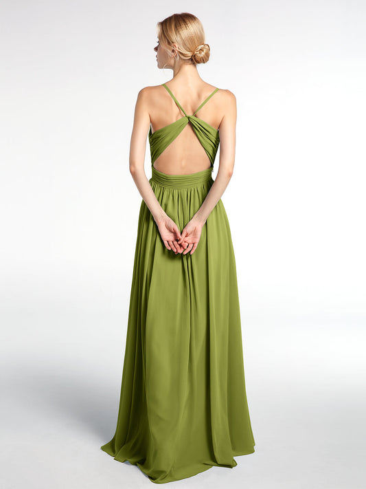 Babaroni BreendaVestido de chiffon con espalda abierta en forma de cruz y tirantes finos Verde Oliva Tallas Grandes