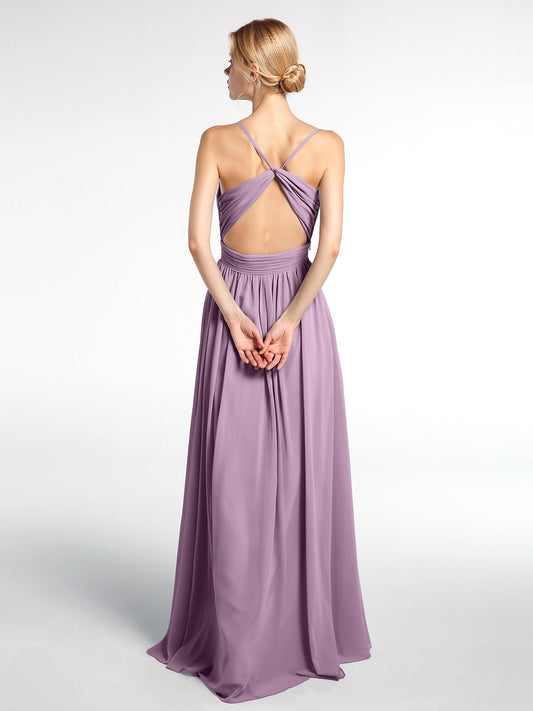 Babaroni BreendaVestido de chiffon con espalda abierta en forma de cruz y tirantes finos Wisteria