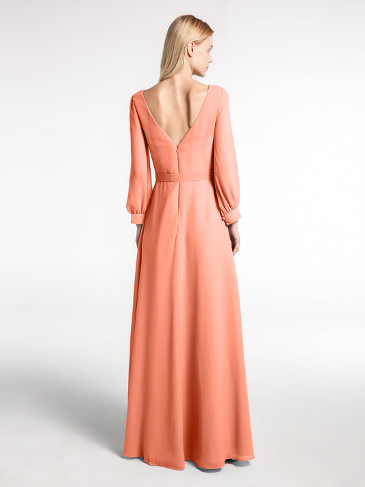 Babaroni MaxineVestido de chiffon con mangas de obispo y lazo con escote en V Atardecer Tallas Grandes