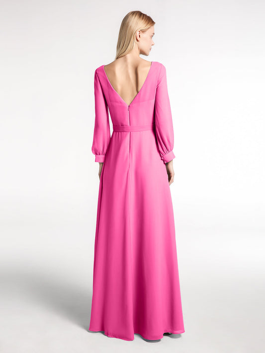 Babaroni MaxineVestido de chiffon con mangas de obispo y lazo con escote en V Azalea Tallas Grandes