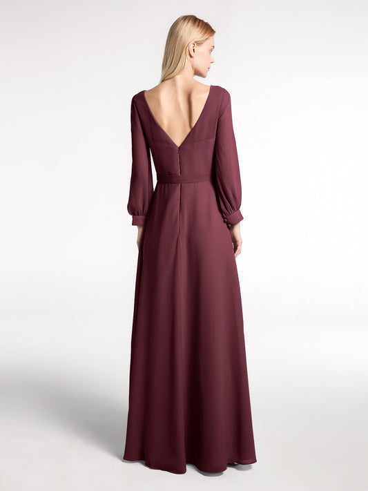 Babaroni MaxineVestido de chiffon con mangas de obispo y lazo con escote en V Cabernet