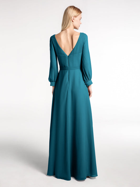 Babaroni MaxineVestido de chiffon con mangas de obispo y lazo con escote en V Azul Océano Tallas Grandes