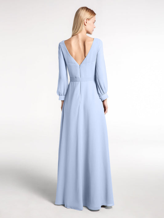 Babaroni MaxineVestido de chiffon con mangas de obispo y lazo con escote en V Azul Cielo