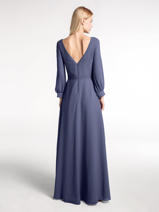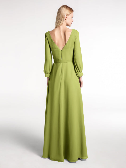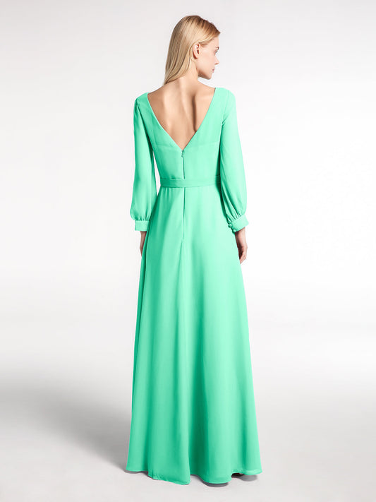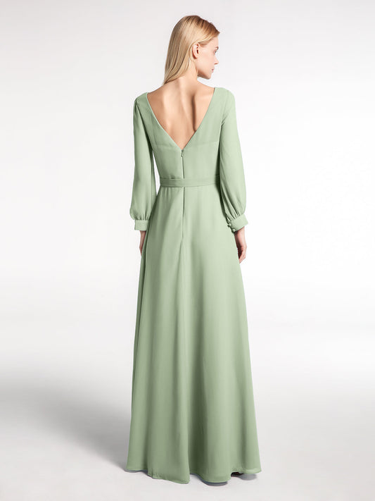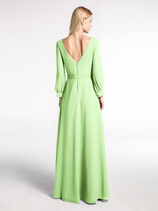 Babaroni MaxineVestido de chiffon con mangas de obispo y lazo con escote en V Trébol