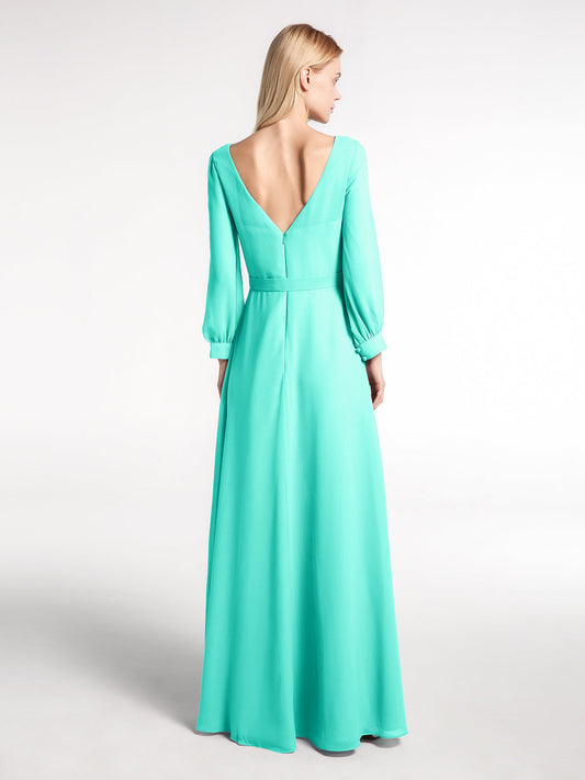 Babaroni MaxineVestido de chiffon con mangas de obispo y lazo con escote en V Turquesa Tallas Grandes