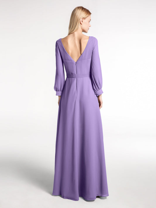 Babaroni MaxineVestido de chiffon con mangas de obispo y lazo con escote en V Uva
